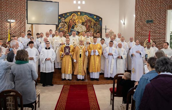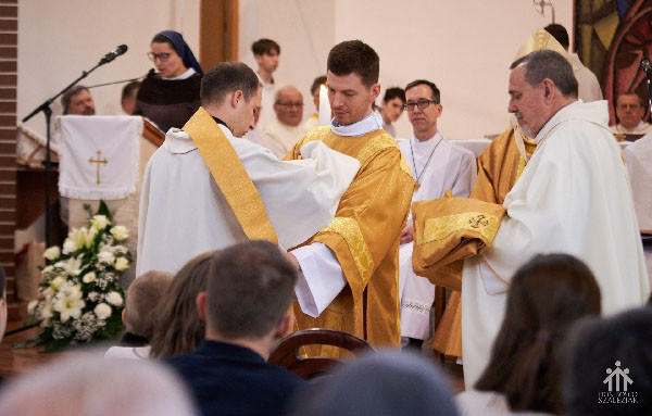 Kedves testvérem, ma itt van veled az egész Egyház. Itt vannak szüleid és testvéreid, a te elkötelezett katolikus családod, amely három szerzetesi hivatással örvendeztette meg és gazdagította az Egyházat. Itt van az egész ünneplő szalézi közösség, valamint ez a szép plébániai közösség is, amely szeretettel vesz körül téged és imádkozik érted. Mindannyian egybehangzóan arról tanúskodnak, hogy alkalmas vagy erre a szolgálatra, amelyre kiválasztást nyertél.