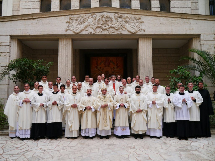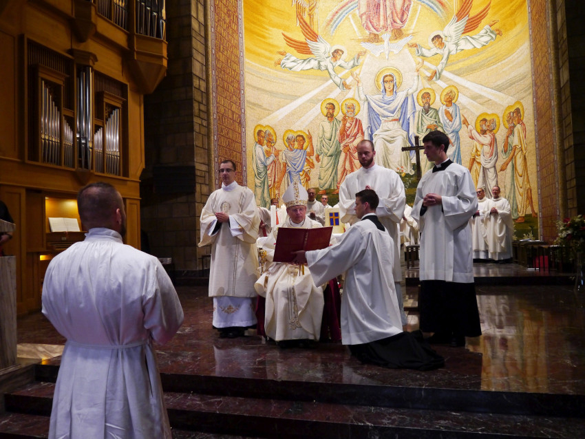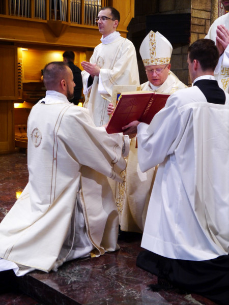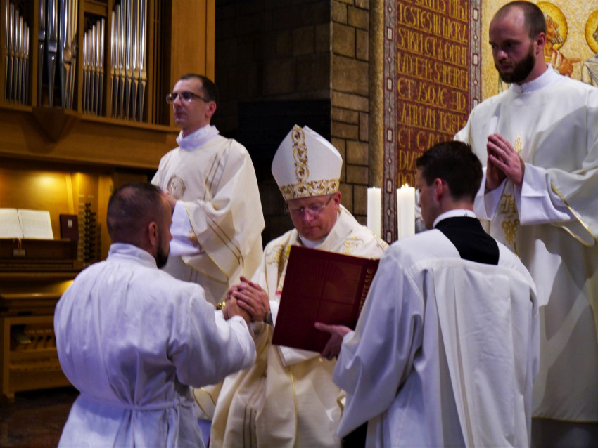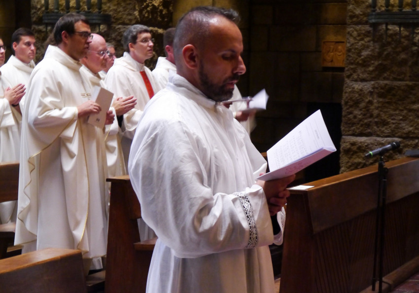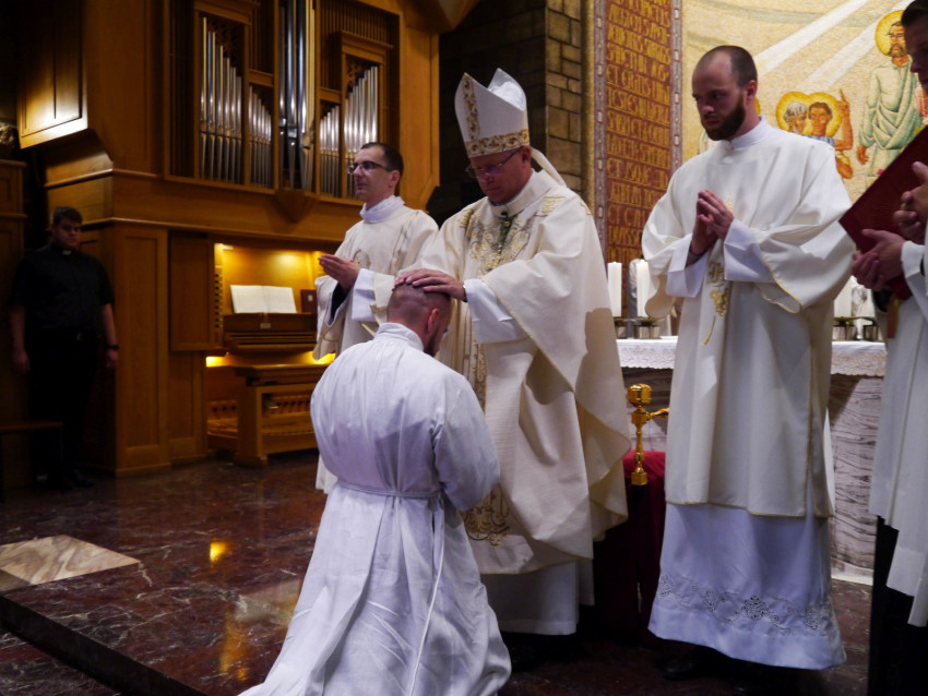 A római tanévkezdésre való tekintettel – sokéves hagyománytól eltérően – idén október első napjára, Lisieux-i Szent Teréz ünnepére került a kollégiumban szokásos diakónus- és papszentelés időpontja. E napon Vánkos Alex, a nagyváradi egyházmegye papnövendéke nyerte el az egyházi rend szentségének első fokozatát, a diakonátust. A fiatalember teológiai diplomájának megszerzését követően az aktuális tanévben kezdi meg licenciátusi képzését Rómában, a Lateráni Egyetemen (Pontificia Universitas Lateranense).