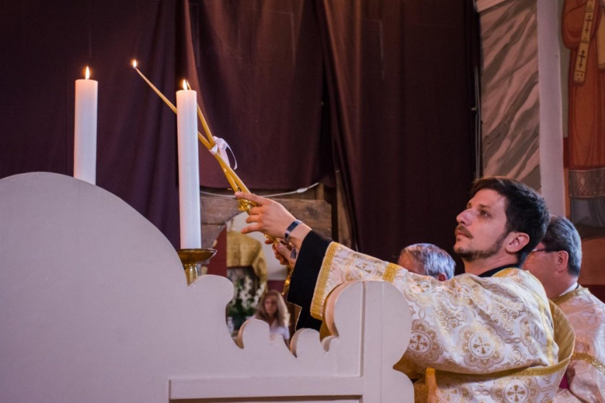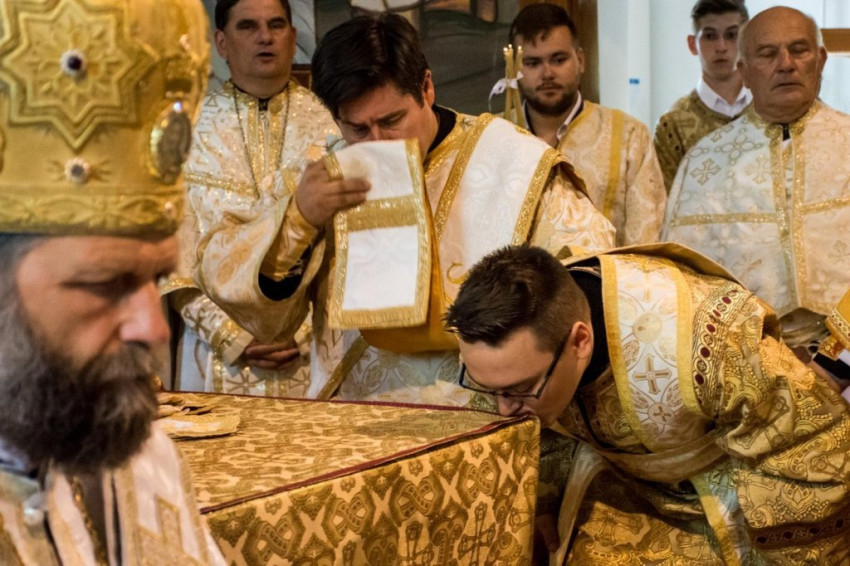 A szentelési liturgiára a templomot megtöltötték a hívek. A szentelendő rokonsága és barátai együtt ünnepelték a helyi közösséggel a Szentlélek kegyelmének megnyilvánulását. A főpásztoron kívül tizenkét pap állt az oltár mellett, két diakónus és több alszerpap szolgált a szertartáson. Az éneket a szentelendő kispap barátai vezették. Az anaforát követő szentelés után az új szerpap már diakónusi feladatát végezte.