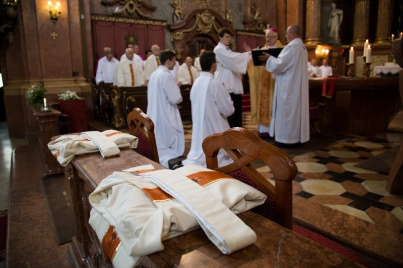 A felszentelő imádság után a paptársak liturgikus öltözékbe öltöztették a felszentelteket, az evangéliumos könyv ünnepélyes átadása után a papság békecsókot váltott a diakónusokkal. A diakónusok a szertartás folytatásában már a főpásztor mellett végeztek oltárszolgálatot a szentmise bemutatásában.