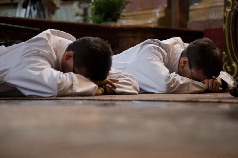 A szertartás folytatásaként a szentelő püspök ünnepélyes kérdéseket tett fel a jelölteknek, hogy a hívek előtt erősítsék meg szándékuk komolyságát. Majd a püspök kézrátétele és felszentelő imája által kérte a Szentlelket a szentelők életére.