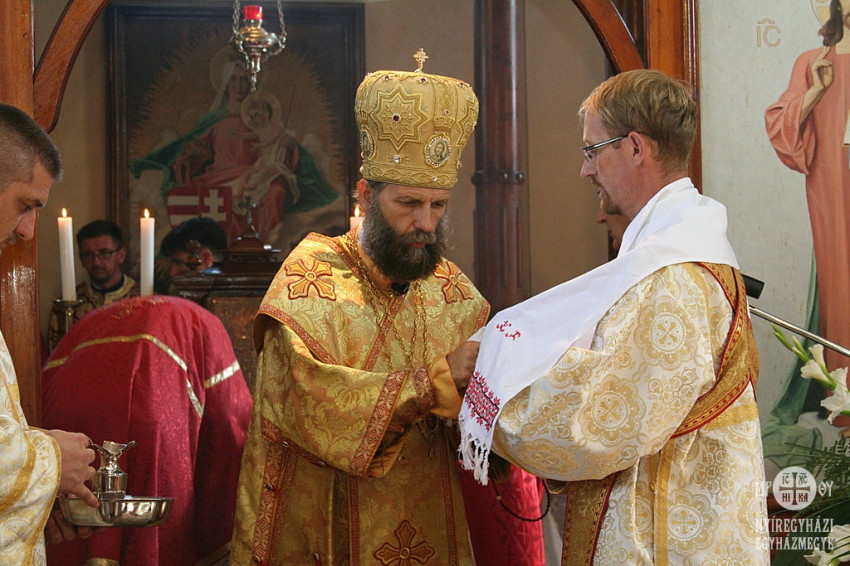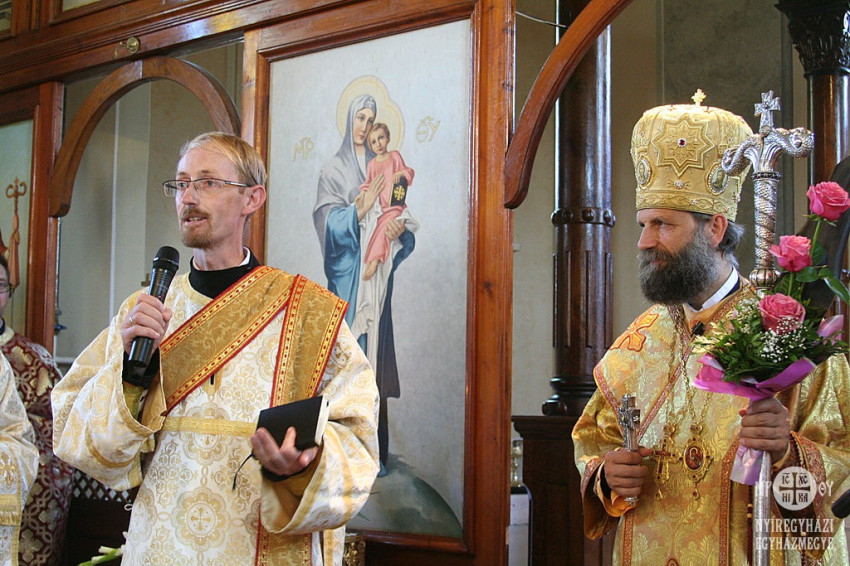 A Szent Liturgia végén Mosolygó Tamás beregdaróci parókus üdvözölte az újszenteltet. Köszöntőjében a diakónusi szolgálatot az angyali szolgálathoz hasonlította, mely a dicsőítés és az előkészítés szolgálata is egyben, s amelyet most éppen azon a napon kezd el teljesíteni az új diakónus, amelyen a szárnyakkal ábrázolt Keresztelő Szent Jánost ünnepeljük.