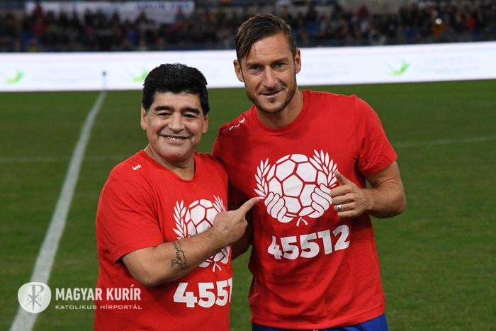 Diego Maradona is részt vett az október 12-i jótékonysági futballmérkőzésen, melyet Ferenc pápa kezdeményezett; az „Együtt a békéért” mottóval meghirdetett meccsen olyan sztárok játszottak, mint Ronaldinho, Francesco Totti, Cafu és Felipe Anderson.