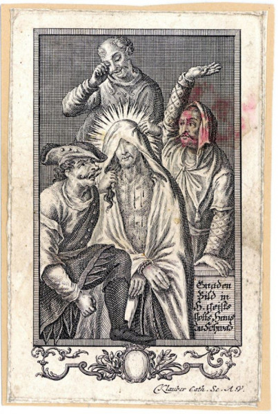 A tárlaton főleg 17–19. századi metszetek szerepelnek, amelyek között olyan különleges képtípusokkal, ábrázolásokkal találkozhatunk, mint a gyermek Jézus a passió eszközeivel (Arma Christi); Krisztus titkos szenvedései a börtönben, illetve megostorozása és kigúnyolása; Veronika kendője típusú szenvedő Krisztus-arc ábrázolások; Krisztus keresztje mint az élet, a kegyelem forrása, mint szőlőtő; búcsúkiváltsággal ellátott szentképek; Krisztus öt Szent Sebe; Szűz Mária a keresztrefeszítés eszközeivel; szentek hódolata a keresztrefeszített Krisztus előtt. Az egyszerű papírlapra vagy vászondarabra nyomtatott metszetek sokaságát egyéb műtárgyak képeivel is igyekeztek oldani.