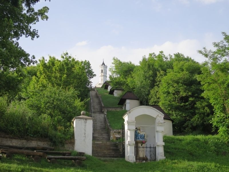 Az egyik érdekes magyarországi helyszín a magyarpolányi Kálvária-domb, ami nem az általánosan elterjedt tizennégy állomás témáját mutatja be, hanem a fájdalmas rózsafüzér öt titkát dolgozza fel.