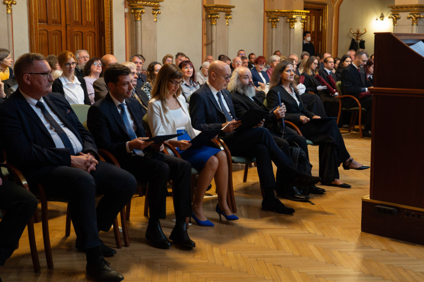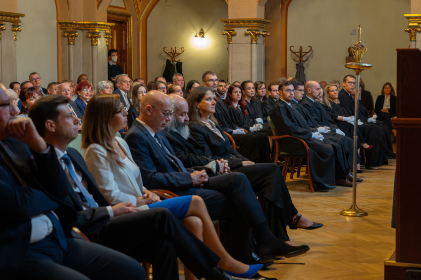 Komáromi László, a Jog- és Államtudományi Kar (JÁK) dékánja Szent II. János Pál pápa vélekedésére emlékeztetett, aki szerint az egyetemek feladata az, hogy feltétel nélkül az igazság keresésének szentelje magát. Hozzátette: az is járulékos feladat, hogy az igazság továbbadása állandó törekvésünk legyen.