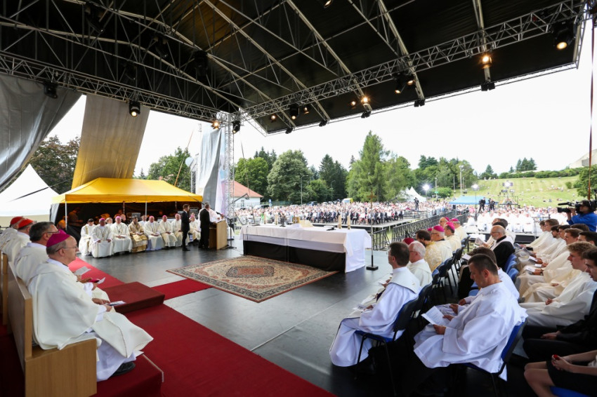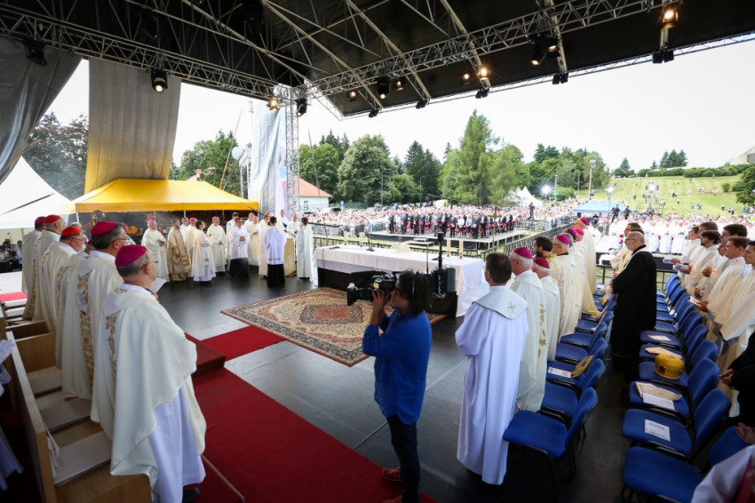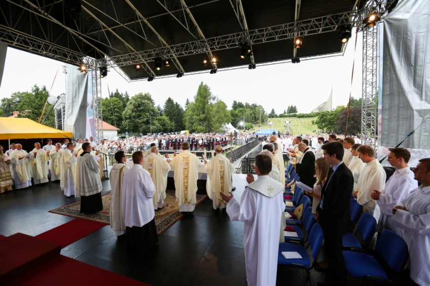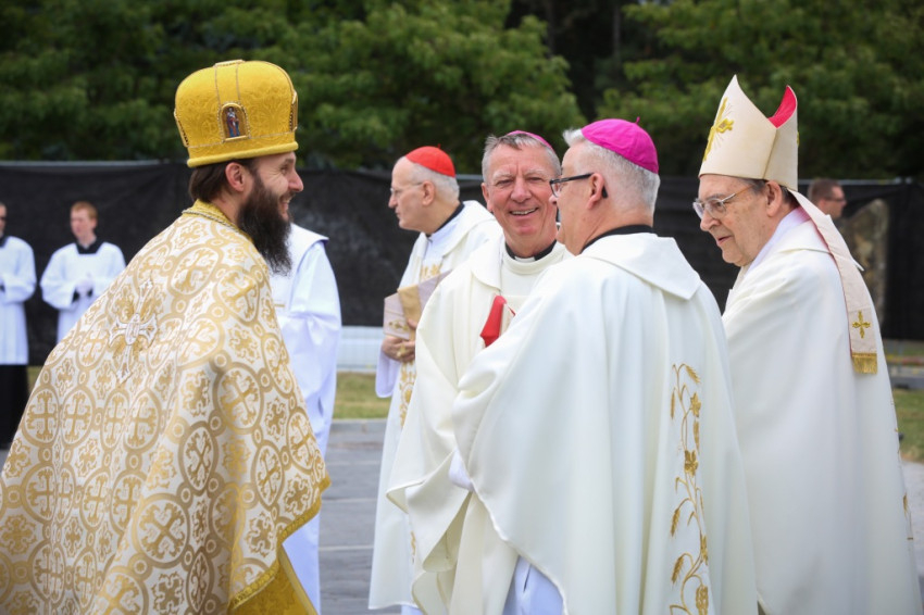 A szertartás elején Veres András, a Savariában született Szent Márton püspök születésének 1700. évfordulóját ünneplő Szombathelyi Egyházmegye apostoli kormányzója köszöntötte az egybegyűlteket. Külön köszöntötte Dominik Duka bíborost, Prága érsekét, aki Ferenc pápa személyes küldötte a találkozón. Veres András felhívta a figyelmet arra, hogy az egyházmegye második püspöke a prágai születésű Gróf Harrasi Herzán Ferenc bíboros volt. Herzán Ferenc először az Osztrák-Magyar Monarchia nagyköveteként tevékenykedett a Szentszéknél, később lett szombathelyi megyéspüspök. Nagy értékű könyvgyűjteményével csodálatos örökséget hagyott az egyházmegyére.