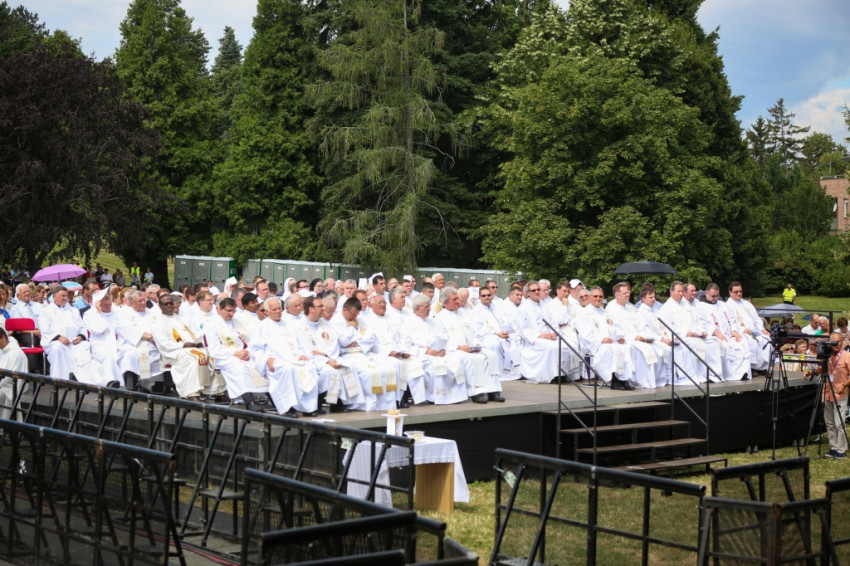 A latin nyelvű szentmisén koncelebrált Alberto Bottari de Castello apostoli nuncius, Erdő Péter bíboros, Veres András, a Szombathelyi Egyházmegye apostoli kormányzója, a Magyar Katolikus Püspöki Konferencia elnöke, a Magyar Katolikus Püspöki Konferencia tagjainak jelentős része, számos határon túli magyar és külföldi püspök. A szertartáson jelen volt Kövér László, az országgyűlés elnöke, Semjén Zsolt miniszterelnök-helyettes, több államtitkár és a közélet további képviselői. A szentmisén részt vettek azok a zarándokok, akik a Szent Márton Zarándokvonattal érkeztek Budapestről Vas megye székhelyére.