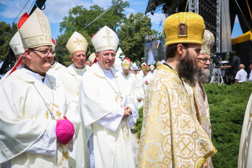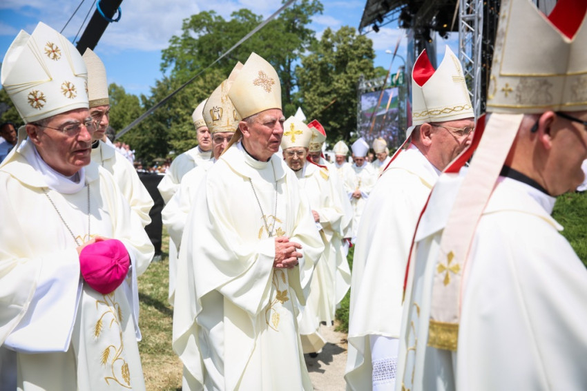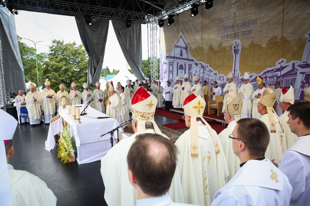 Az egyház harmadik feladatát, a felebarát szolgálatát, diakóniát vagy caritast Márton olyan addig nem sejtett módon bontakoztatta ki, hogy nemcsak a galliai, hanem az egész Római Birodalom területén élő püspökök számára példakép lett. Ha ily módon magunk elé idézzük Szent Márton történetét Szombathelytől Tours-ig, valójában az egyház máig tartó története is megjelenik előttünk. Nagyon is alkalmas, hogy felidézzük közös történetünket, amelyben majd egy évezreddel később bátor nők vállalnak diakóniai vagy karitatív szolgálatot a közép-európai térségben, akik mind az Árpád-házból származnak. Szent Erzsébet Magyarországról, Lengyelországban Szent Kinga, de Szent Ágnes is Csehországban. Tudjuk, hogy mindez akkoriban nem Szent Márton sugallatára, hanem Assisi Szent Ferenc példáját követve történt. Ő ihlette meg annyira mélyen a mi mostani pápánkat is, aki olyannyira ragaszkodik az egyház karitatív és szociális szolgálatához, felrázza a mai világot, különösen azt a részét, amelynek szívét a bőség eltompította. Pál apostol – ahogy olvastuk – olyan egyházat látott maga előtt, amelynek közössége a szeretetből él, a caritasból, ami annyit tesz, mint tisztelet, kölcsönösség, részvét. A Máté-evangélium 25. fejezete arra emlékeztet minket, hogy az irgalmasság rendkívüli szentévében vagyunk, ezt pedig Ferenc pápa nagyon komolyan gondolja. A végső ítélet képe is, az irgalmasság testi és lelki cselekedeteivel, amelyek alapján megítéltetünk majd, világos szavakkal szól arról, mit jelent ma is kereszténynek lenni. Aki nem ismeri a múltat, a jelent sem érti – ezért tekintettünk vissza olyan részletesen az egyház és a ti országotok történelmére, ezért idéztük emlékezetünkbe az emberi együttérzés és a 13. századi szent asszonyok felebaráti szeretetének eszményét. Ki kell mondanunk: ha nem ebben a szellemben éljük a jelent, nem lesz jövőnk sem.