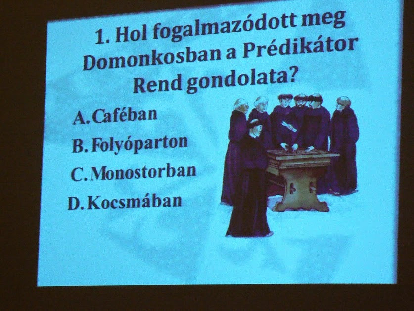 Az érdeklődők ezt követően megfejtették a „domonkos kvíz” rejtvénysort, amelynek fődíját Szűcs Adél, a Svetits Intézet 10/b osztályos tanulója nyerte. Ő ellátogathat Budakeszire, a nővérek kolostorába.