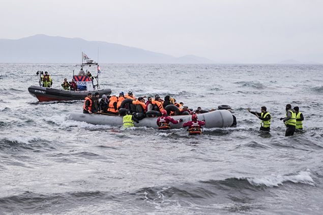A riporterek szeme előtt feltűnt az első csónak. Nem sokkal később könnyes szemű férfiak értek partot, a nőket, időseket, gyermekeket az önkéntesek segítették. Amit láttak, az történik minden éjjel: a fiatalok kiáltoznak örömükben, a többiek inkább sírnak. A gyermekekről az önkéntesek leveszik átázott ruháikat és a mentőmellényt, amely a legtöbb esetben nem igazi, csak kartonpapírral van kitömve. A nők fáradtan leülnek, néhányan gyermekeiket keresik. A gyerekek közül néhányan örülnek, mások semmibe vesző tekintettel bámulnak, fagyos kezükkel a kapott édességet sem tudják megfogni. Az önkéntesek mentőfóliába takarják őket. Fél óra múlva már érkeznek is az UNHCR (az ENSZ menekültügyi szervezete) autóbuszai, amelyek a Camp Moria nevű befogadóállomásra viszik a menekülteket: itt regisztrálják őket, és viszik tovább a táborokba, amelyeket – hivatalos gondoskodás hiányában – jórészt civil szervezetek működtetnek.
