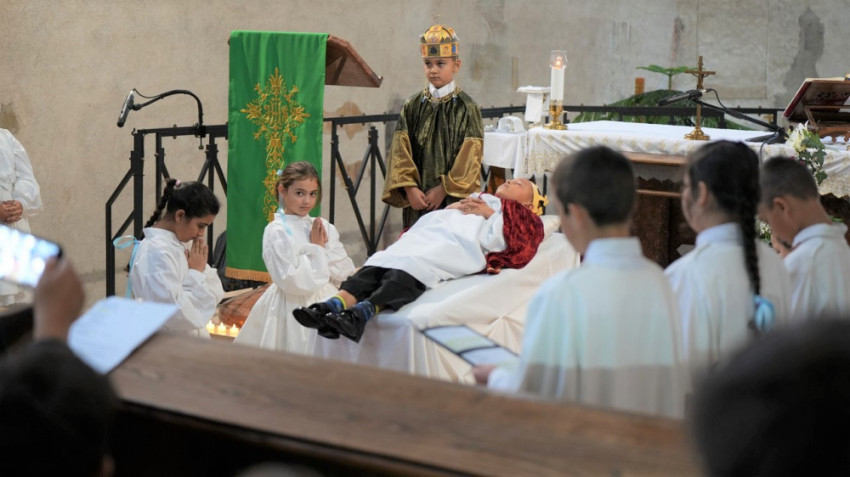 Szentbeszédét a püspök rendhagyó módon folytatta: a Szent Istvánt, Szent Imrét és Szent Gellértet alakító diákok személyes közreműködését kérte oly módon, hogy kérdéseire válaszolva a gyermekek kiemelték a megformált szerepük legfőbb üzenetét, amit Felföldi László kifejtett.
