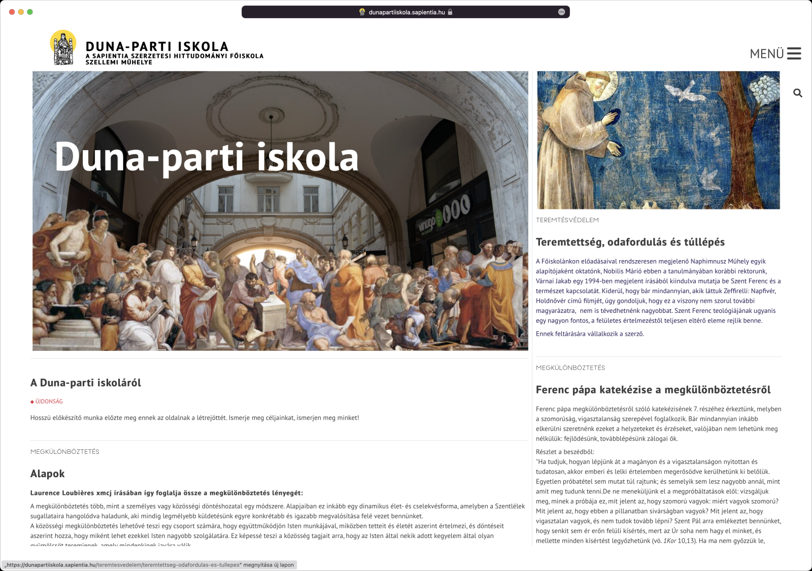 – A Duna-parti Iskola honlapján vannak témák, amelyek a Világegyház aktuális történéseihez kapcsolódnak: gazdag anyagot állítottunk össze például azok számára, akik még csak most ismerkednek a szinódus fogalmával, folyamatával, illetve szeretnék megtudni, hogy a megkülönböztetés mint a szerzetesi hagyományban gyökerező módszer és feladat, miként járulhat hozzá ahhoz, hogy az életünket meghatározó fontos kérdésekben jó döntéseket hozzunk.