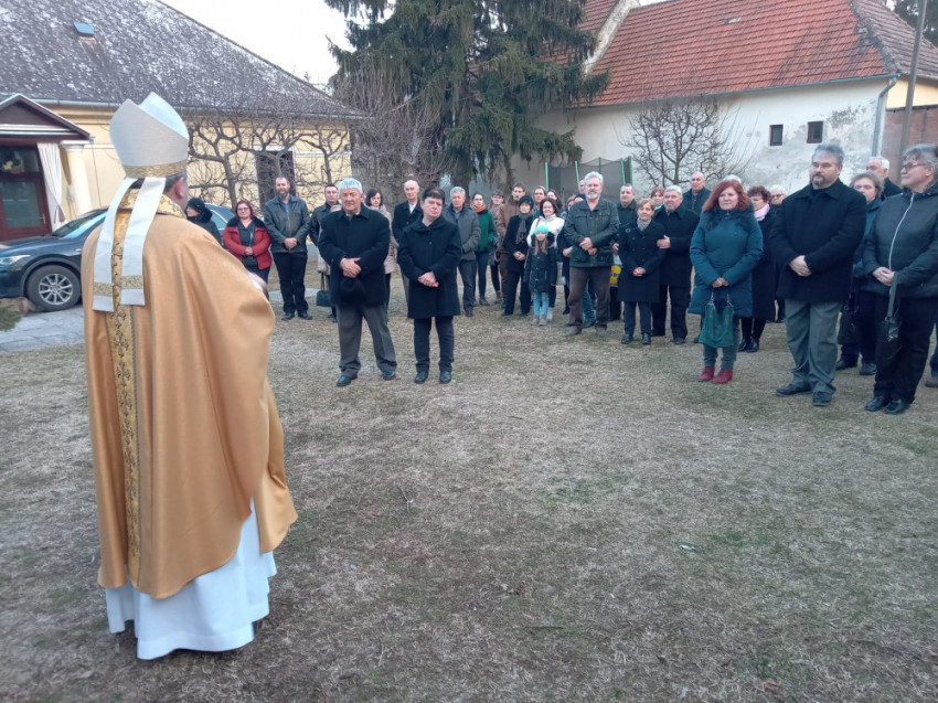 Február 19-i főpásztori látogatása alkalmából Felföldi László püspök Isten áldását kérte a területre, mely – miként fogalmazott – immár valóságban is az itt élő közösség hasznára szolgál. Ahogy minden családnak otthonra, úgy a közösségnek is megfelelő térre van szüksége, amit élettel tölthet meg. Isten szeretetében imádkozva egymásért és a közösségért, kérjük, hogy ez a tér legyen az itteni közösség életének gazdagsága, ereje és forrása – fordult a hívekhez a pécsi megyéspüspök.