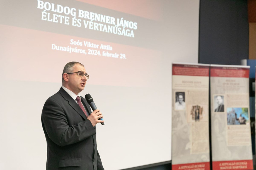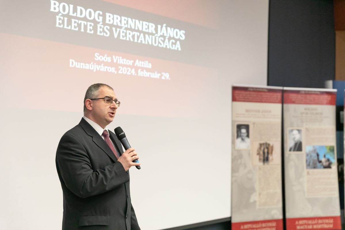 A megyéspüspök szavai után Soós Viktor Attila egyháztörténész, a Nemzeti Emlékezet Bizottságának tagja tartotta meg előadását a kommunizmus egyházüldözéséről. Számos ténnyel szolgált még a kegyeletlen időszakból: a legnagyobb terror 1953-ban és 1957-ben volt, ezekből az évekből hallhatunk a legtöbb vértanúról. A mártírok között volt Boldog Brenner János, akinek életéről és tragikus haláláról is beszélt előadásában Soós Viktor Attila. Az egyháztörténész kiemelte: Brenner Jánost, ahogy társait is, a hitükért ölték meg. Ők csak tették a dolgukat, komolyan vették hivatásukat, az elköteleződést. Történetük azt az üzenetet hordozza, hogy azt, ami az életfeladatunk, ahová a sors rendel minket, csináljuk igaz szívvel, s álljuk meg ott a helyünket.