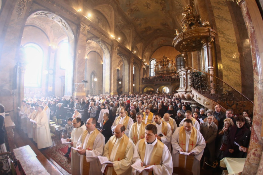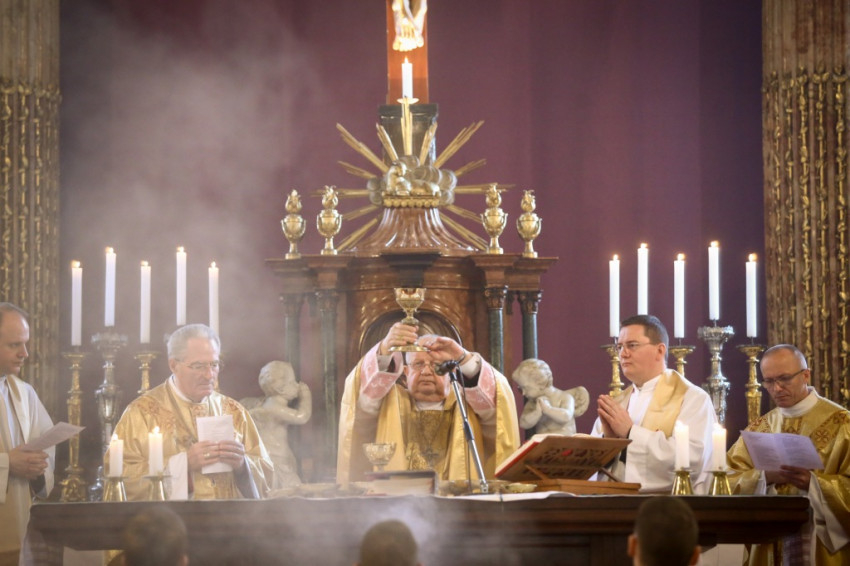 A szentmise latin és magyar nyelven folyt, a bíboros lengyel nyelvű homíliáját Lukácsi Zoltán rektortól hallhatták a hívek magyarul.