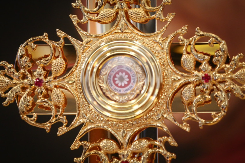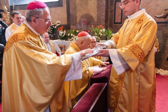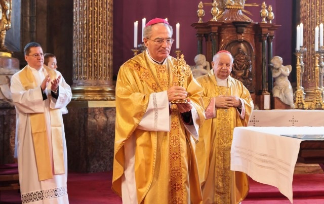 Ezt követően a bíboros átadta a vérereklyét Pápai Lajos győri megyéspüspöknek.