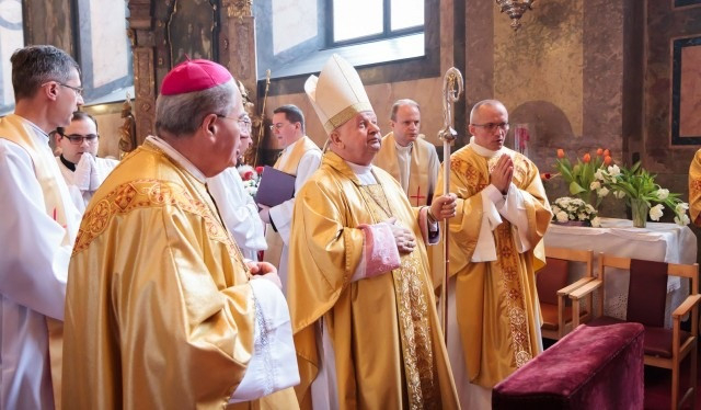 Szentbeszéde elején a lengyel főpásztor kiemelte, nagy öröm számára, hogy az irgalmasság szentévében Győrben ünnepelhet a Könnyező Szűzanya búcsúján. Egyúttal köszöntötte Pápai Lajost püspökké való kinevezése 25. évfordulója alkalmából.