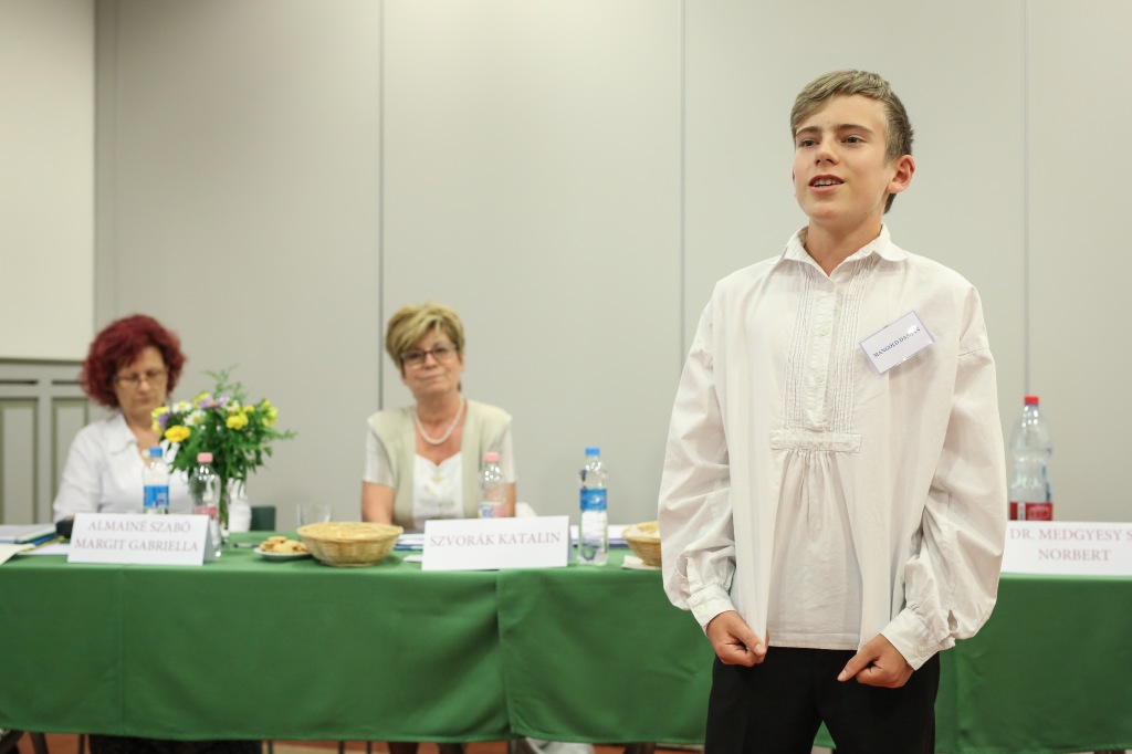 Almainé Szabó Margit Gabriella ének-zene szakos pedagógus, szaktanácsadó, a zsűri tagja elsősorban a pedagógusokhoz szólt. Elmondta, hogy a népdal és a népének a legmagasabb rendű formában tárja a gyermekek elé a nemzeti értékeinket éppúgy, mint azokat, amit a zenével szeretnénk megtanítani. A verseny során olyan csodálatos értékek tárultak föl, amit a későbbiekben is fontos táplálni. Elmondta azt is, hogy fontos, hogy egy tematikán belül is különböző énekeket ismerjenek a diákok a magabiztosság elnyerése céljából, illetve mennyire fontos, hogy a külső megjelenésünk által a szívünk is ünneplőbe öltözzön.