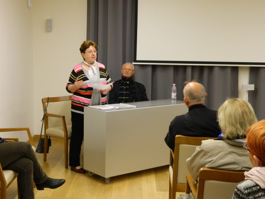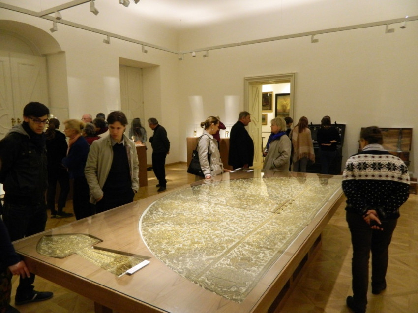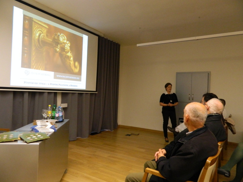 A palota bejárása után Löffler Erzsébet, az egri Főegyházmegyei Múzeum leköszönő igazgatója beszélt az érseki palota felújításáról, a koncepciókról, a tervekről és a kivitelezésről.