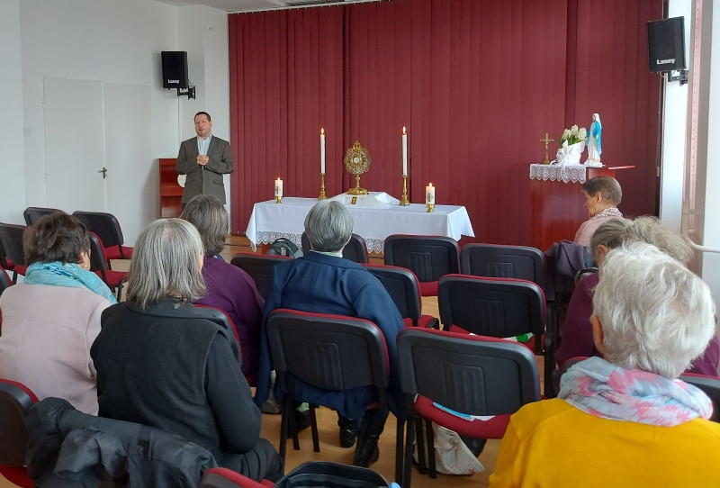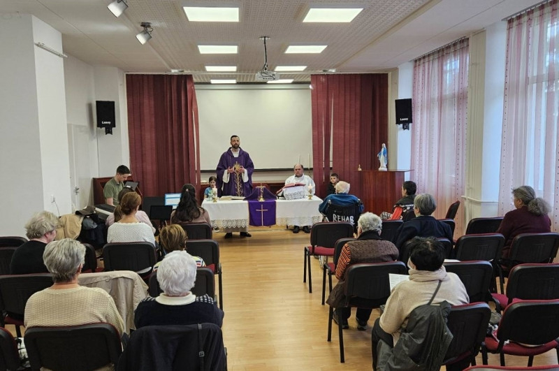 Az egész napos imádságunk gitáros dicsőítéssel és ünnepi szentmisével zárult, amit szolgálatunk vezetője, Torma Joel atya celebrált. Szentbeszédében kiemelte, hogy a világosság fiai kell, hogy legyünk, akik a kórház nehézségeit, fájdalmait tudjuk egy jó szóval, egy simogatással vagy szeretetteljes meghallgatással, odafordulással enyhíteni.