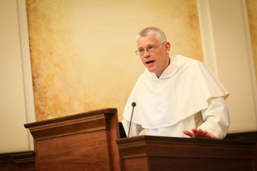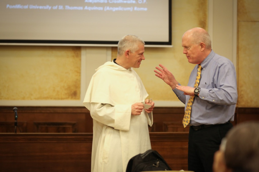 A konferencia Oxfordból érkezett előadója, Richard Finn OP Palenciától Peruig Athénon át címmel tér- és időbeli távlatban mutatta be a domonkosok szerepvállalását szociális és társadalmi kérdésekben. Mit mondtak az elődök, milyen szerepet töltöttek be a domonkos intézmények, és mi a megfogalmazott elméleti tudás jelentősége korunkban? – ezekre a kérdésekre kereste a választ. A rend tevékenysége azt bizonyítja: nem választhatók el egymástól az irgalom testi és lelki cselekedetei. A domonkosok számára a legfőbb cél a lelkek megmentése, de nem hagyható figyelmen kívül a test rászorultsága – mutatott rá az előadó Szent Domonkos példája alapján, aki eladta a számára nagyon értékes könyvtárát, hogy élelmet tudjon adni az éhező embereknek.