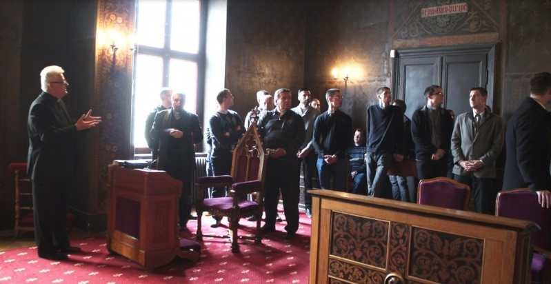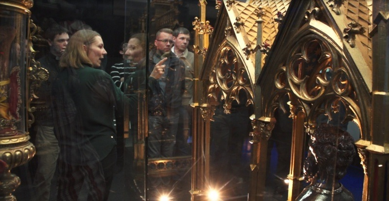 Ezután a muzeális könyvtári gyűjteménybe kaptak betekintést a palota dísztermében. Végül tárlatvezetéssel tekintették meg az egyházmegyei múzeum Szentek titkai kiállítását és a Prohászka-emlékkiállítást.