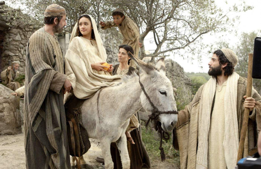 Mária és József kapcsolata a Betlehembe vezető, sokféle megpróbáltatással járó úton teljesedik ki igazán, ekkor válnak végleg egymást szerető és mindenben támogató házaspárrá. Az életüket immár végigkísérő misztérium ekkor is foglalkoztatja őket. Mária azt kérdezi Józseftől: „Honnan fogjuk tudni, hogy a születendő gyermek másmilyen lesz, mint a többi?” Józsefben felvetődik a kétség: Lesz-e egyáltalán bármi, amire taníthatja Jézust? Józsefnek erős hite ellenére sem lehetett könnyű elfogadnia a számára Istentől kijelölt sorsot. Kiválóan ábrázolja ezt az a jelenet, amikor egy kedves élelmiszerárus Mária állapotát látva megkínálja őt a süteményével, Józsefnek pedig azt mondja: „Nagy öröm lehet a saját arcod vonásait felfedezni a gyermekedben.” József arca egy pillanatra elkomorul, de a feszültséget feloldva, Mária megfogja a kezét, József pedig viszonozza asszonya gyengédségét. Kezük összefonódik, kifejezve ezzel mélységes, elválaszthatatlan együvé tartozásukat.