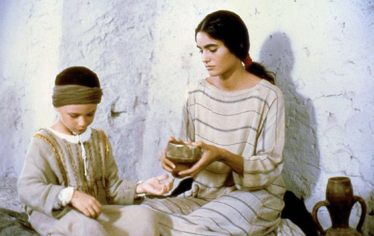 Franco Rossi A gyermek, akit Jézusnak hívtak című, 1987-ben elkészült filmtrilógiájának jelen ideje két esztendőt ölel föl. A történet Jézus földi életének hetedik és kilencedik éve között játszódik, de látomásai révén egész megváltói küldetése feltárul előttünk. A filmben a Szent Család tagjai között nagy-nagy szeretet uralkodik, persze ez nem zárja ki az évődést, a kisebb vitákat. József és Jézus mintha időnként alkalmi szövetséget kötnének egymással Mária ellenében, ahogyan az egy apa–fiú viszonyban szokásos. Mária igyekszik szigorú anyaként viselkedni. József ilyenkor Jézus mellé áll, mire rögtön megkapja Máriától: „te mindig a pártját fogod”. József rendkívül szorgalmas ácsmester, Istentől neki rendelt legfőbb küldetésének tartja, hogy gondoskodjék Máriáról és Jézusról. A család nem nélkülöz, ám Józsefnek keményen meg kell küzdenie a mindennapi betevőért. Időnként kénytelen megalázkodni, például a hajótulajdonos előtt, aki először ridegen fogadja őt, amikor ácsmunkára jelentkezik nála. Jézus is vele van ekkor, és József mintha szégyellné magát a fia előtt, zavartan magyarázkodik, hogy mindent érte és az anyjáért tesz. „Tudom, hogy értünk teszed, de nem hiába” – hangzik Jézus válasza, mellyel erőt önt földi apjába.