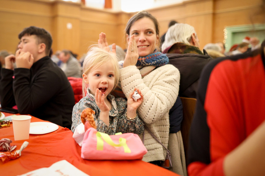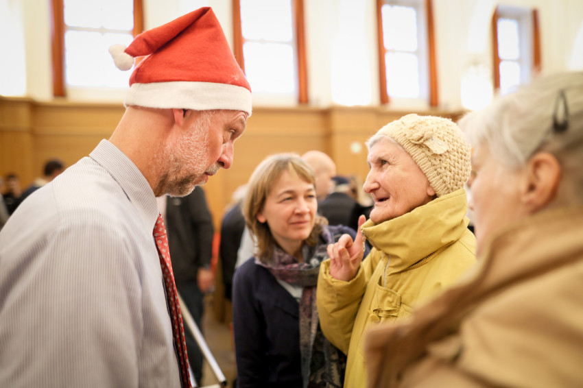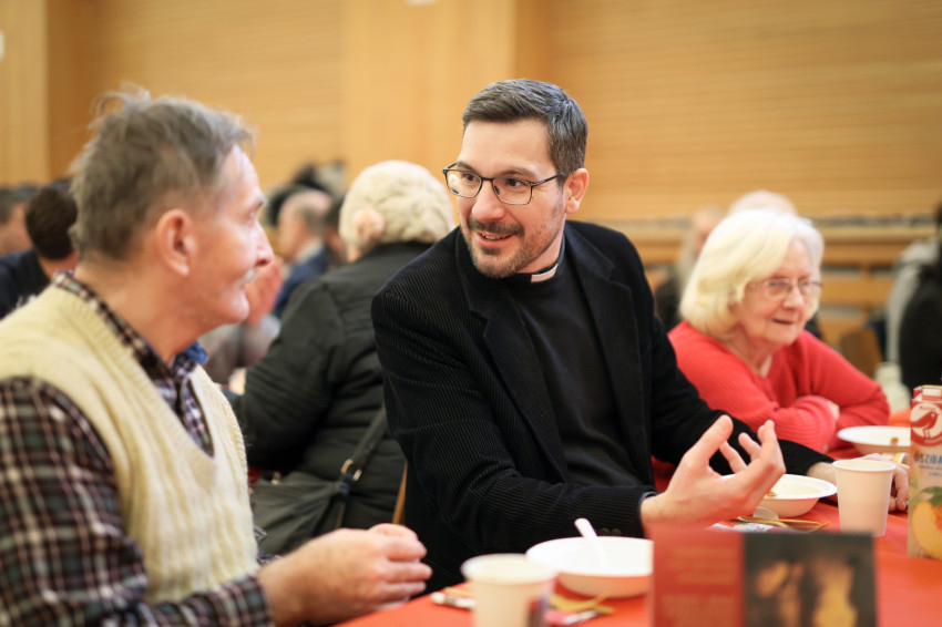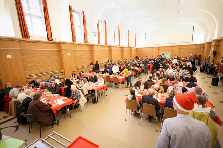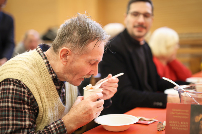 Pécsett kétszázan voltunk a ciszterciek Nagy Lajos Gimnáziuma dísztermében. Ez a karácsonyi ebéd is szép prófétai látomás arról, hogy egymástól nagyon különböző élettörténetű, társadalmi helyzetű emberek hogyan ünnepelhetik együtt a Megváltó, a Béke és a Barátság Fejedelmének születésnapját, nagy mélységben és meleg hangulatban. A köszöntőben a pécsi közösség vezetője, Nagy János felidézte Ferenc pápa 2022-es karácsonyi szentbeszédének egy gondolatát:
