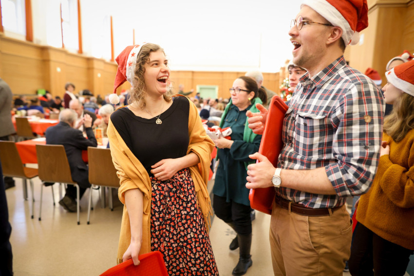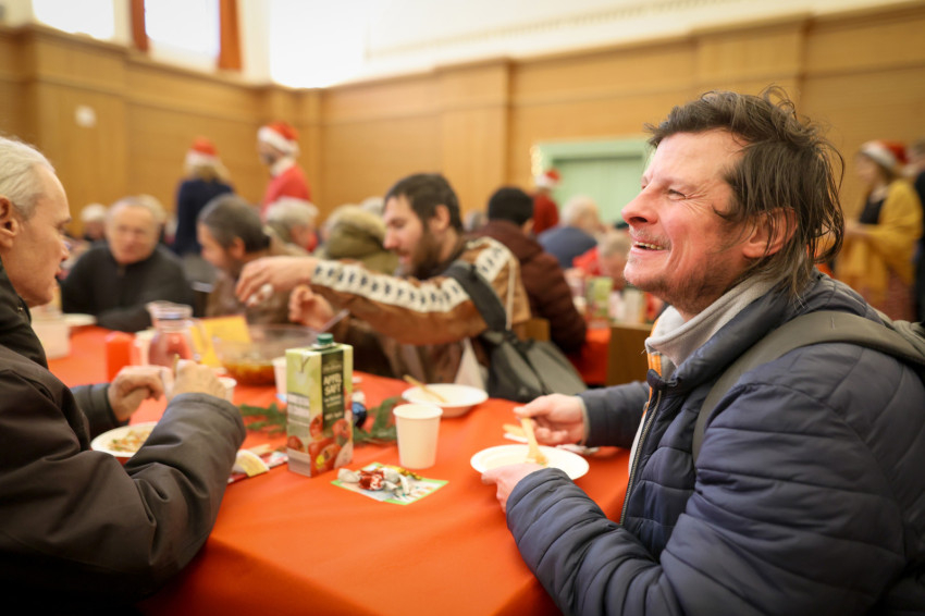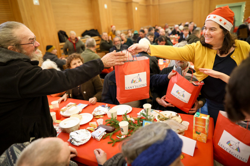 Ezek a gondolatok jutottak eszembe a Sant’Egidio budapesti ebédjén karácsony napján, a Budai Ciszterci Szent Imre Gimnázium gyönyörűen felújított ebédlőjében, amely megtelt fedél nélküliekkel, lakhatási szegénységből, fűtetlen bérlakásokból érkező vagy szociális otthonokban, család nélkül vagy abból kiszakítva élő idősekkel. Fiatal ukrán édesanyákkal, akiknek férjei vagy a fronton, vagy a hátországban védik hazájukat. Az egyik ilyen asztalnál ülő fiatal ukrán anyukák fogadtak barátságukba egy hazánkban menedékre és ösztöndíjra lelő gázai palesztin egyetemista lányt: új barátságok, új ölelések születtek.