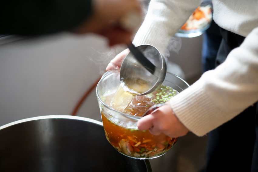 Monoron idén is a csodaszép Fürge Páva bisztró adott helyet a Sant’Egidio karácsonyi ebédjének, a tulajdonos, Kruchió László, „pápai és elnöki virágkötő művész” segített az előkészületekben és a felszolgálásban is, beszélgetett a vendégekkel.