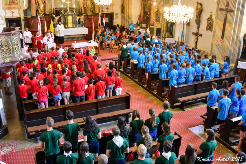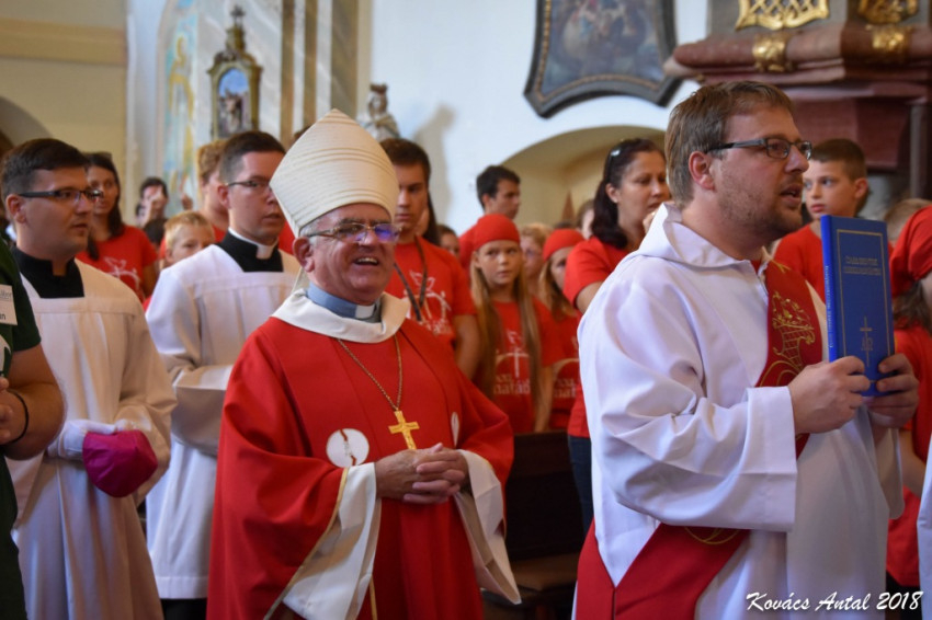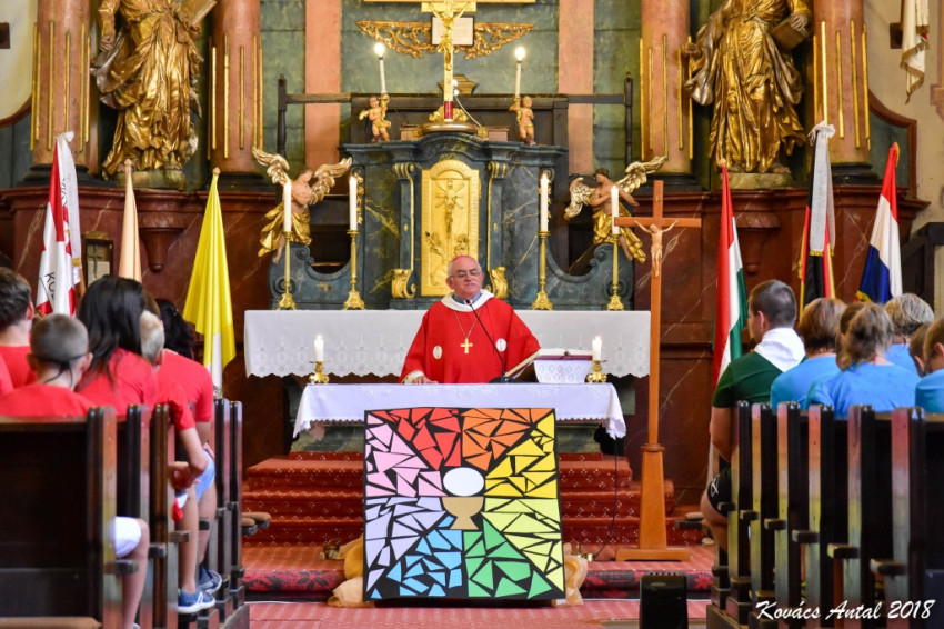 A három táborban összegyűlt fiatalok egy napot közösen töltöttek, és mindannyian együtt ünnepelhettek szentmisét Varga László kaposvári megyéspüspökkel Homokkomáromban. Homíliájában a főpásztor arra biztatta a fiatalokat, hogy égjen tűz bennük, a Szentlélek indítsa őket a tanúságtételre és a hiteles és elkötelezett keresztény életre. A nap szentjét, Edith Steint hozta példaként – aki egészen a halálig hűséges volt és tűzzel teli életet élt.
