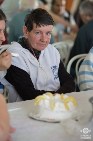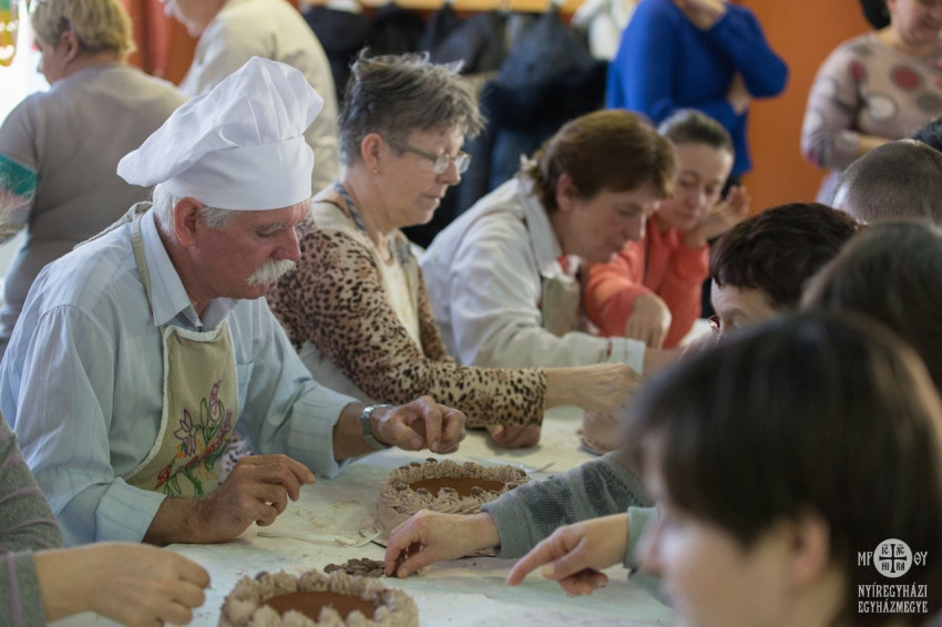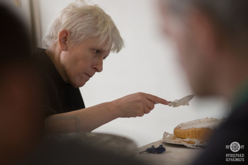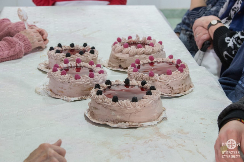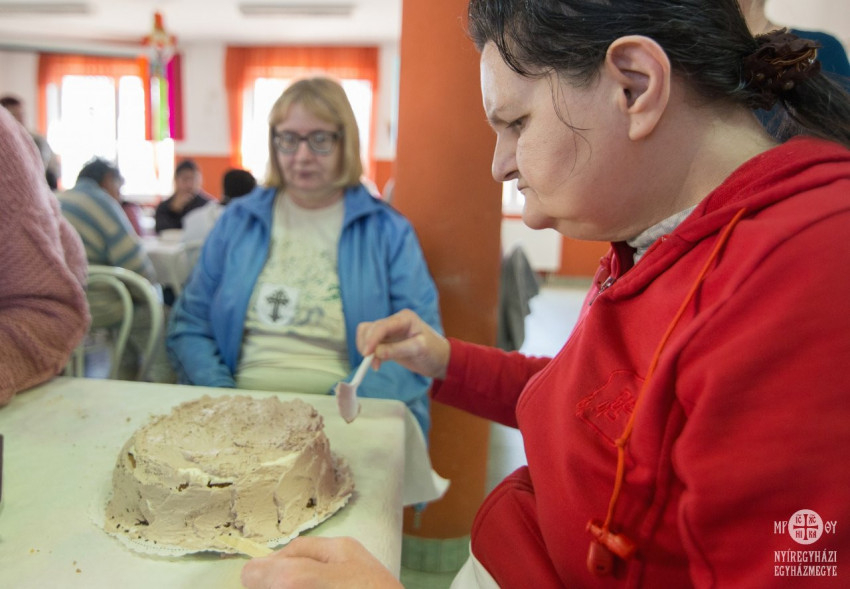 A tortákat összeállították és feldíszítették az ellátottak, de mivel a puding, akarom mondani a torta próbája az evés, rögtön meg is kóstolhatták és azoknak a társaiknak is adtak belőle, akik az elkészítésnél nem voltak jelen. A tortákat az intézmény vezetője, Lippainé Szabó Katalin és az egyházmegye szociális irodájának munkatársa, Morvai Anikó vágta fel.
