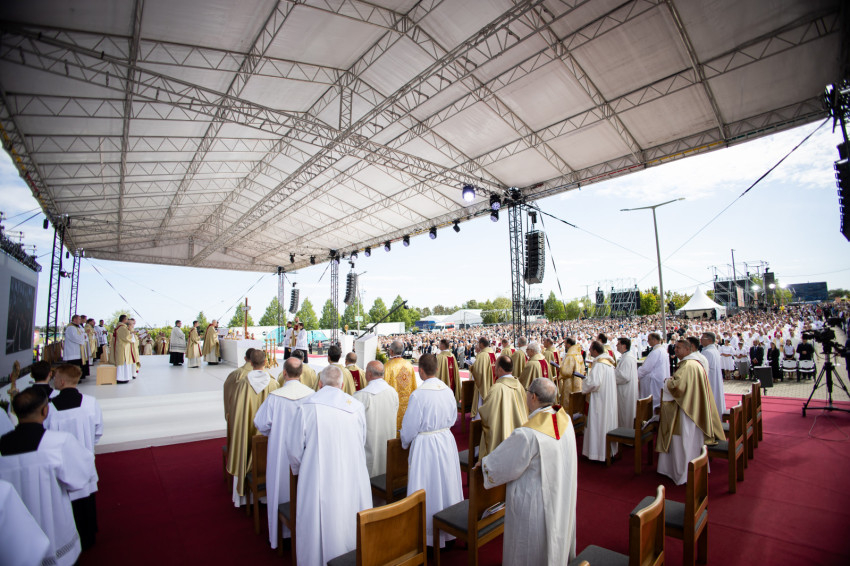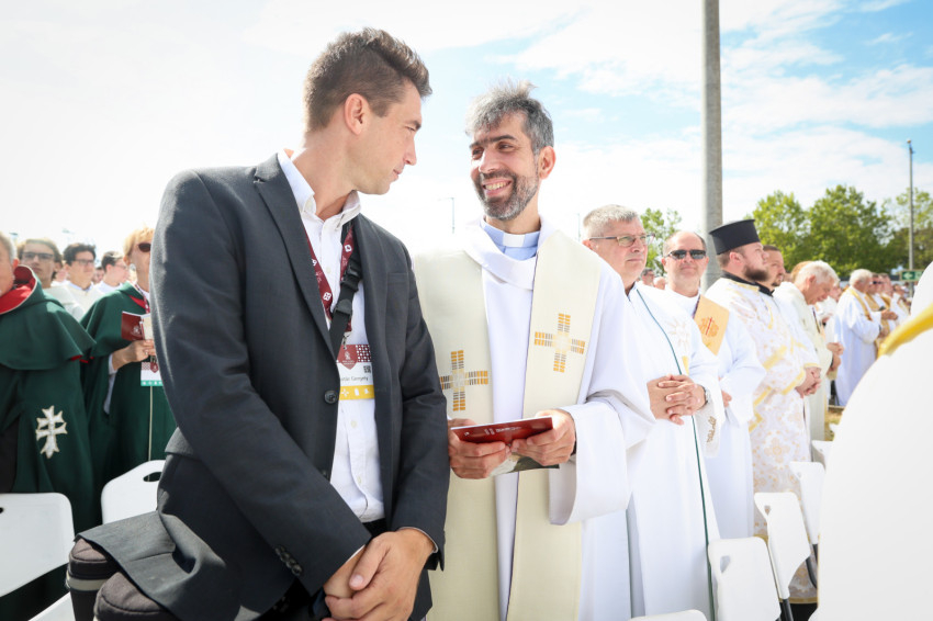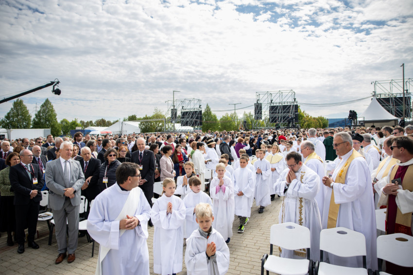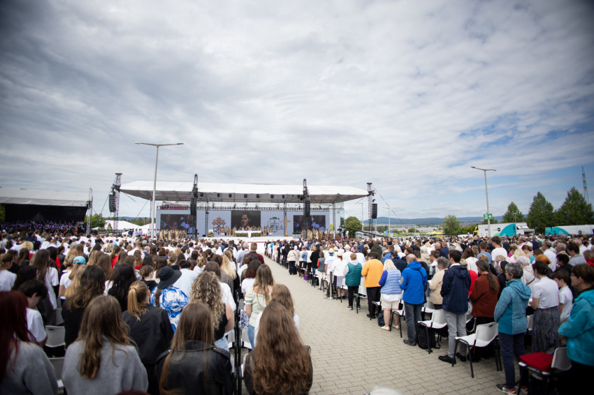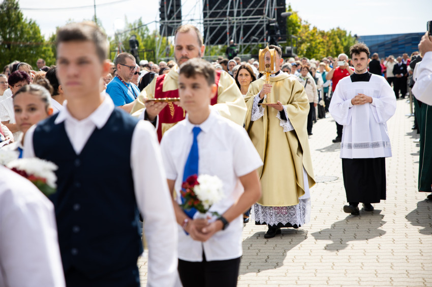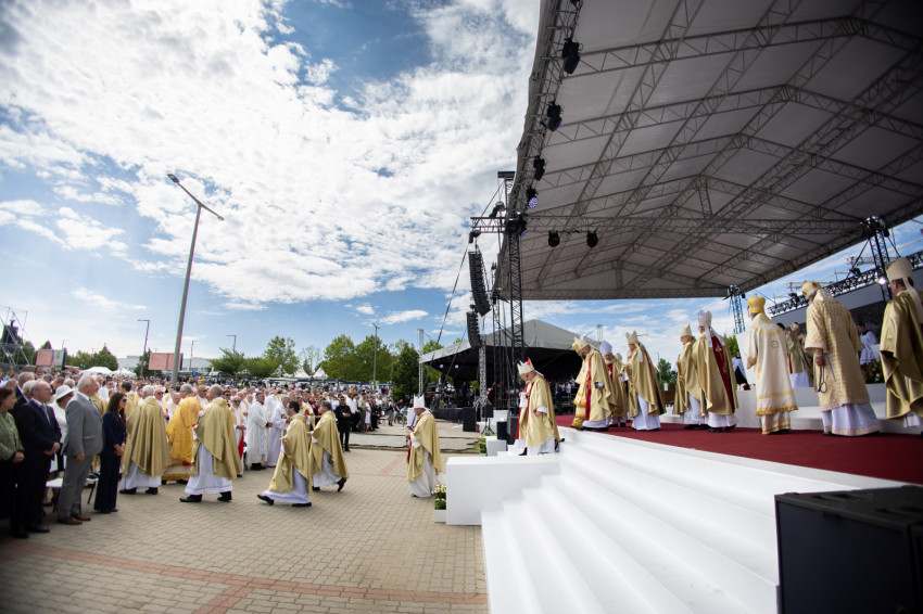 Az áldozás alatt az eucharisztikus himnuszt is együtt énekelték a hívek, majd a Te Deum hálaadása következett.