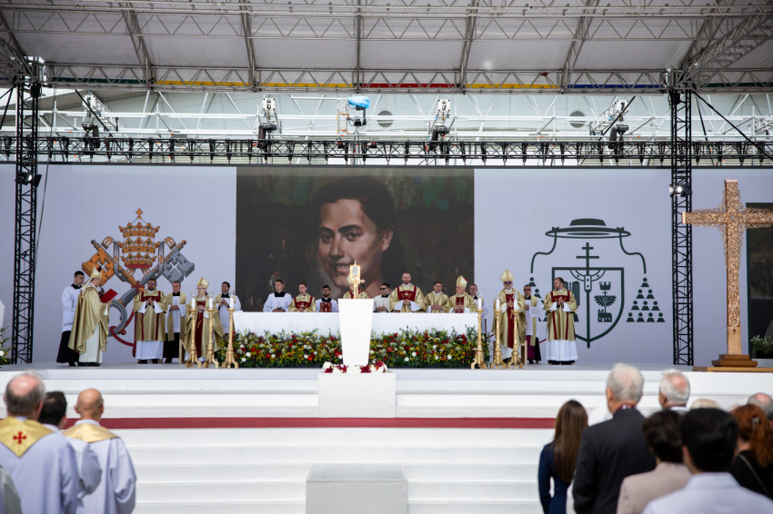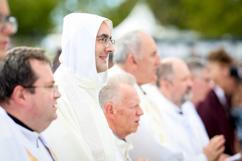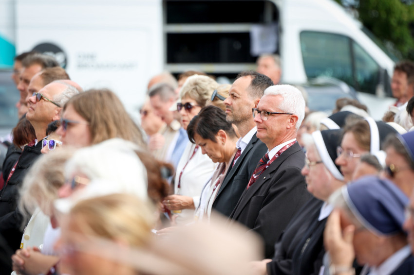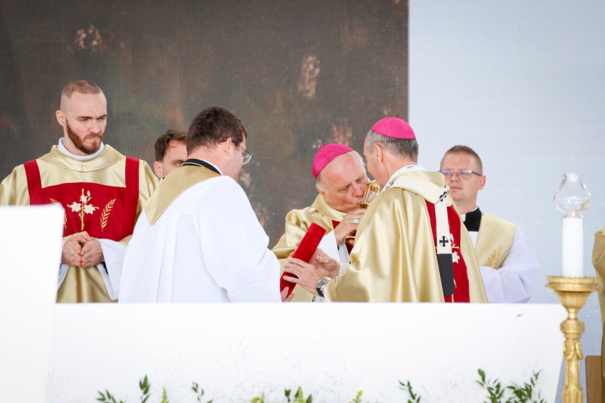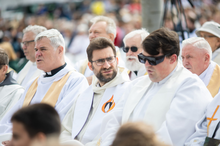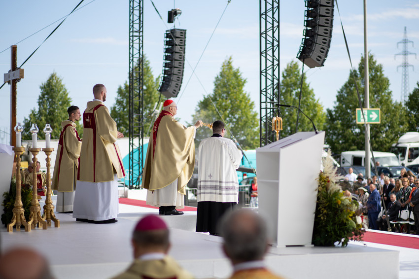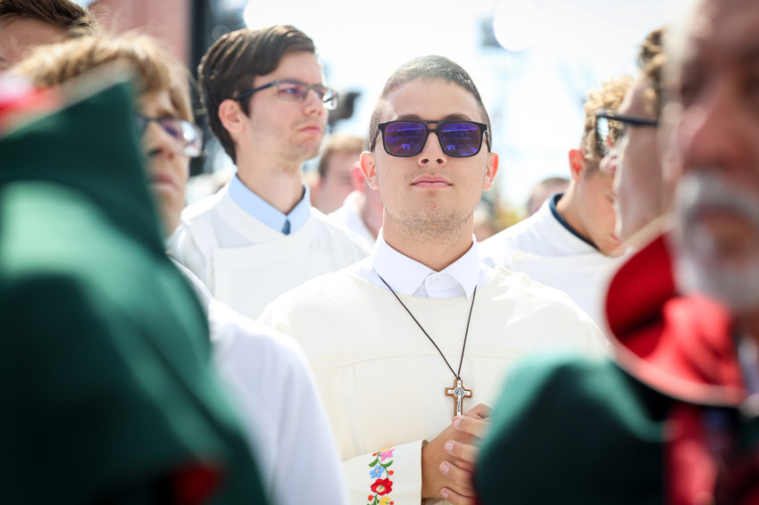 Az áldozás alatt az eucharisztikus himnuszt is együtt énekelték a hívek, majd a Te Deum hálaadása következett.
