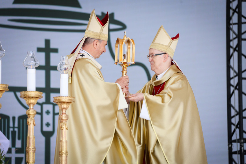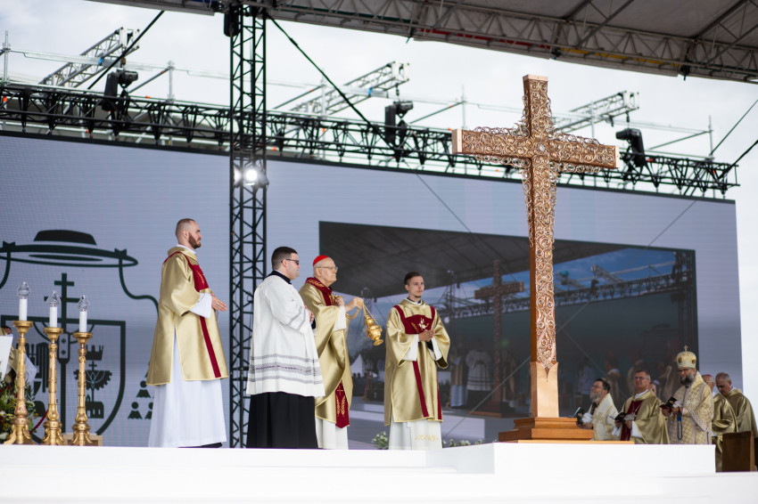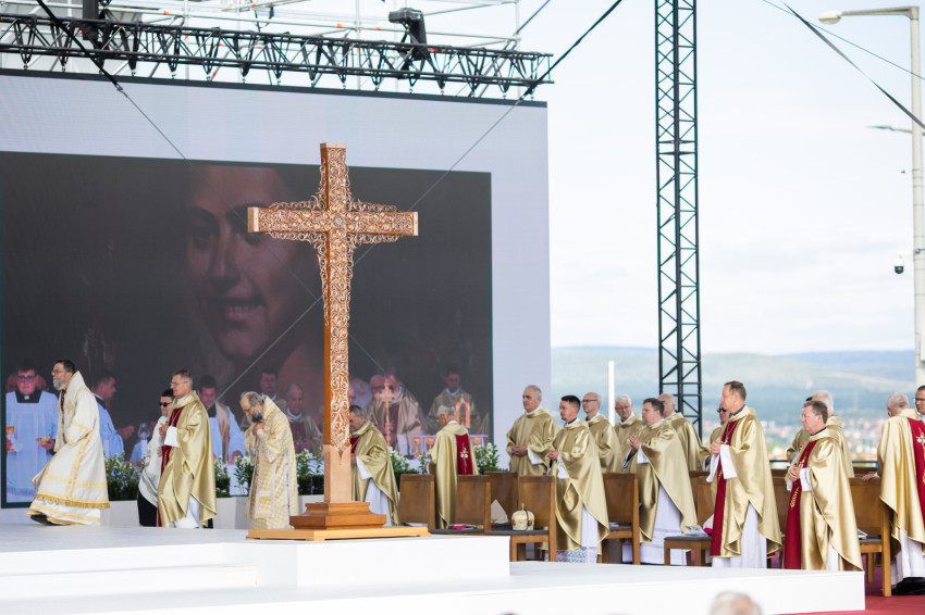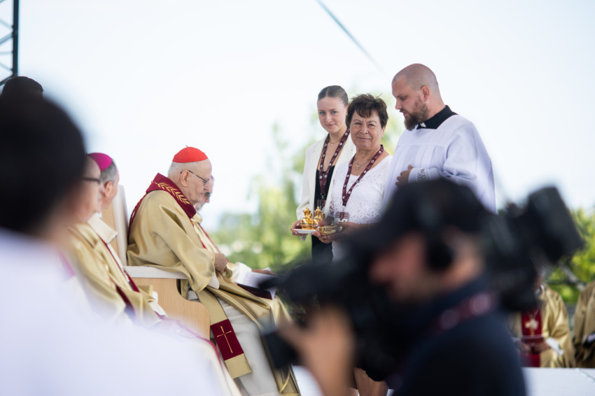 Márfi Gyula nyugalmazott veszprémi érsek az oltárnál átadta Bódi Mária Magdolna ereklyéit, melyeket Laposa Norbert balatonfűzfői plébános hozott ünnepélyesen Cristiana Marinellivel és fiatalokkal együtt. Ezekből egyet Erdő Péter bíboros elhelyezett a missziós keresztben.