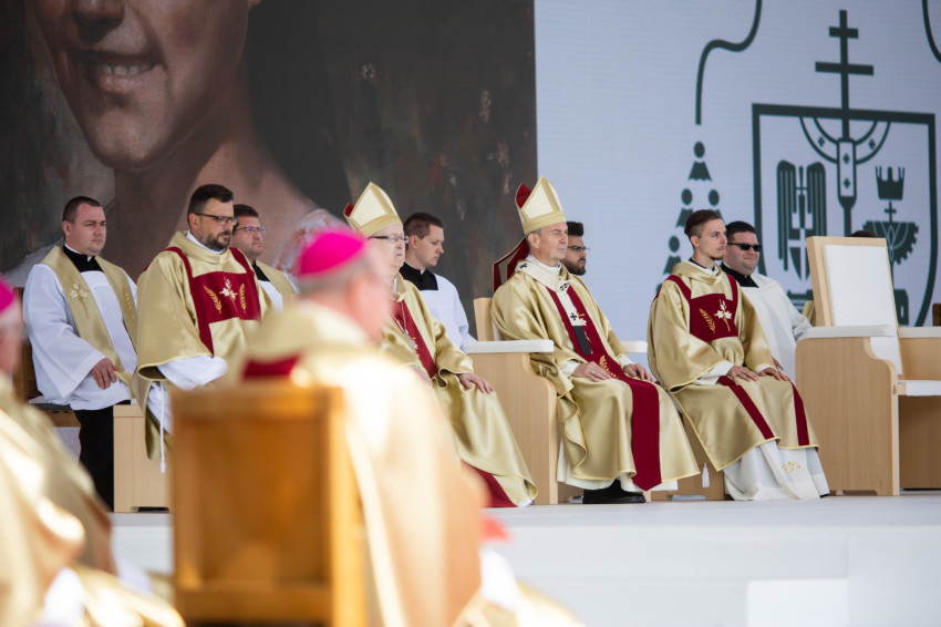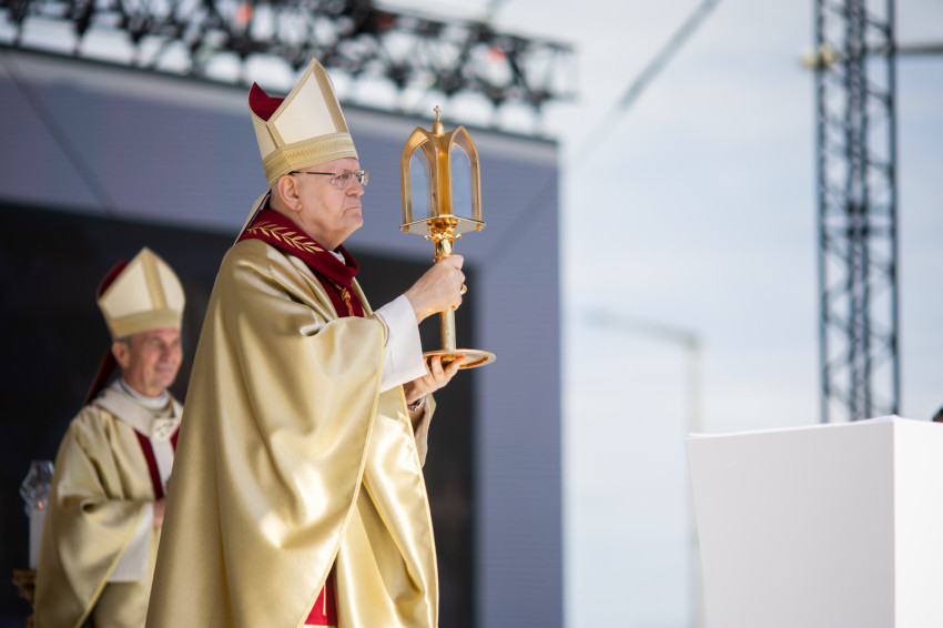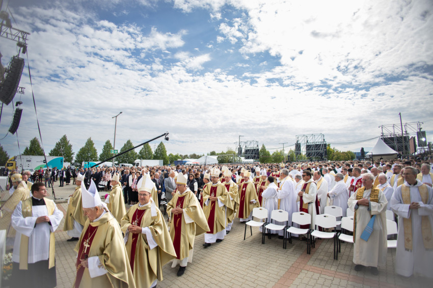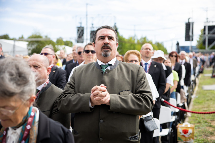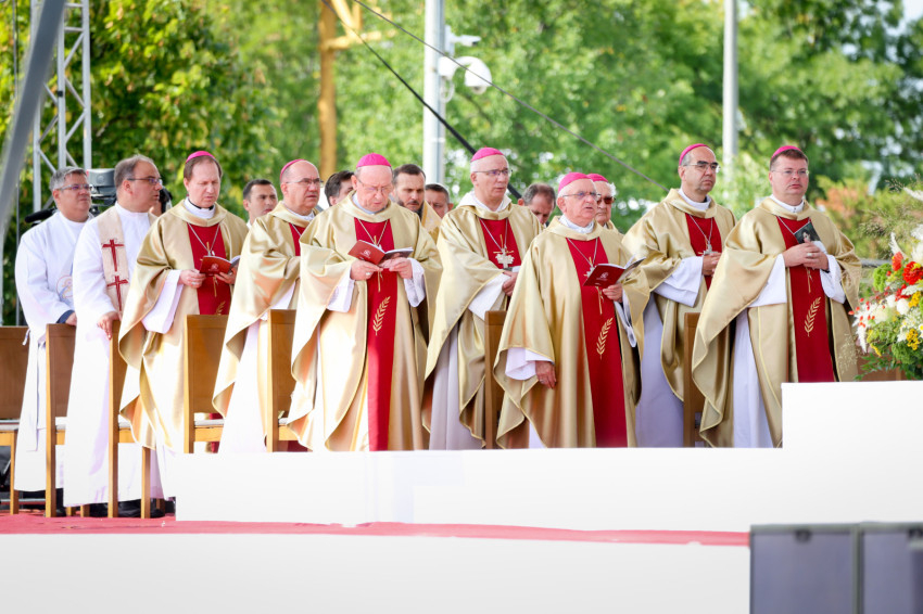 A szentmise a pápai és a nemzeti himnusszal, a Boldogasszony anyánk ősi himnuszával és az Isten, hazánkért térdelünk elődbe énekünkkel fejeződött be.