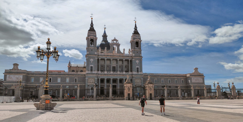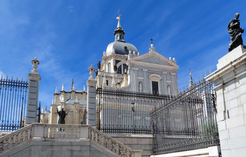 Az Almudenai Szűz Mária királyi katedrálisa a palotával szemben látható. Ezen a helyen egyébként a 11. századig egy mecset állt. Az impozáns templom rendkívül fiatal, hiszen csak 1993-ban szentelte fel Szent II. János Pál pápa. A katedrálisban ma látható kegyszobor 16. századi, az eredeti középkorit elsodorta a történelem vihara. Ebben a templomban kötött házasságot 2004-ben az akkor még csak trónörökös VI. Fülöp és Letizia Ortiz. A Real Madrid labdarúgócsapata többször is felajánlotta Bajnokok Ligája-győzelmét az Almudenai Szűzanyának, erre legutóbb 2024-ben került sor.