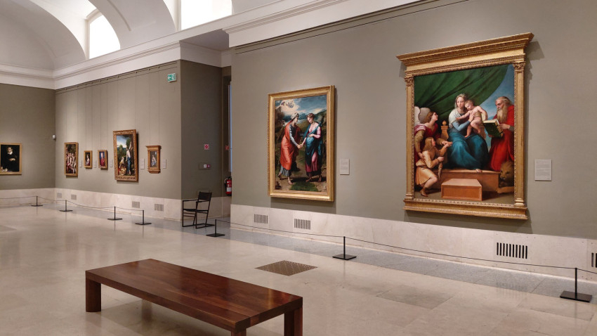 A fővárosba látogató művészetkedvelőnek mindenképpen fel kell keresnie az „arany háromszög” múzeumait, azaz a Pradót, a Reina Sofía Művészeti Központot és a Thyssen-Bornemisza Múzeumot. A Prado gyűjteménye – amely világviszonylatban is előkelő helyen áll – az 1819-ben megnyílt Királyi Múzeum anyagára épült. Mint a nagy múzeumok esetében általában, itt is részesei lehetünk egy művészettörténeti utazásnak: a román kortól egészen a 19. századig láthatunk műveket. Természetesen elsősorban spanyol alkotókét. A Pradót a királyi festők „templomaként”, is emlegetik, Velázquez és Goya több mint száz műve van kiállítva. Emellett El Greco, Murillo és Zurbarán képeivel is találkozhatunk. A flamand festészet is erős anyaggal képviselteti magát, hiszen a két ország sokáig szoros politikai és gazdasági kapcsolatban állt egymással. Rubens közel hatvan képe szerepel a gyűjteményben, de láthatunk itt alkotásokat Van der Weydentől és Van Dycktől is. A mintegy hatszáz, Itáliához köthető mű többek között Raffaello, Del Sarto, Tiziano, Veronese és Tintoretto munkája.