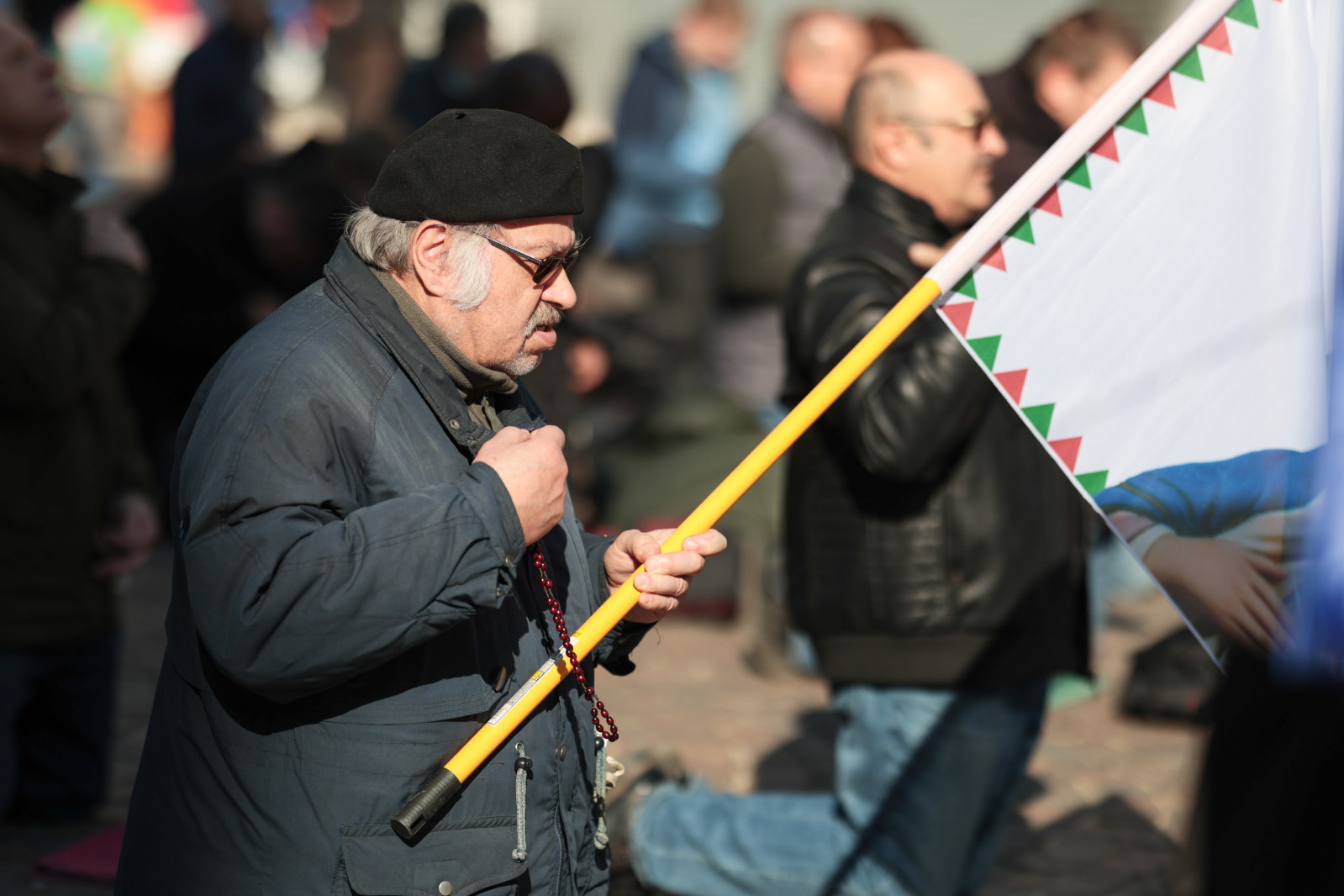 Ez alkalommal számos helyen imádkoztak egy időben magyar férfi testvérek térdelve: a budai Várban a Kapisztrán téren, Kaposváron, Szentendrén, Nyíregyházán, Mohácson és Kecskeméten, Erdélyben a csíksomlyói kegytemplom előtt, illetve a felvidéki Nagytárkányon, Diósdon is. A Szombathelyi Egyházmegyében és más egyházmegyékben is tervezik, hogy elindítják a térden állva végzett szentolvasó imádságot.
