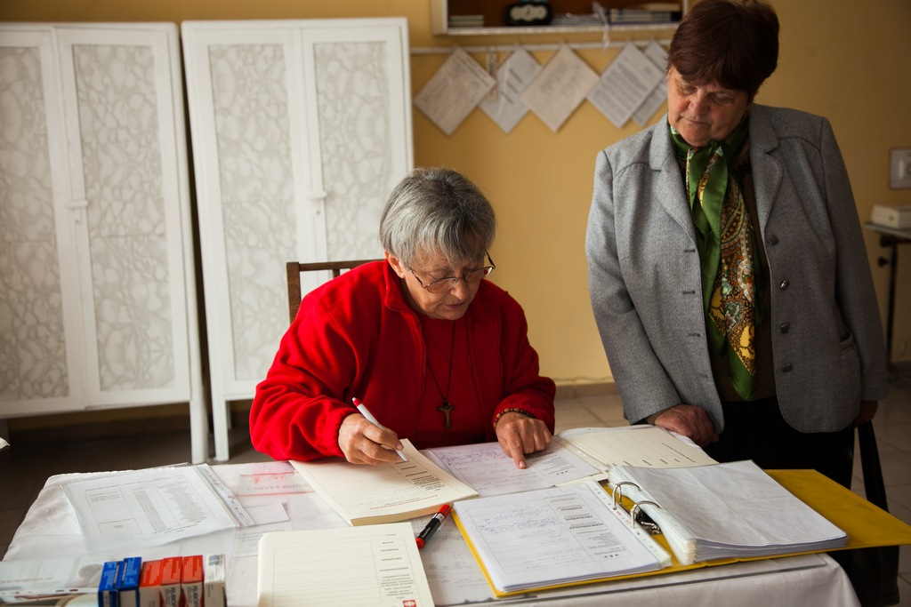 Nagy öröm volt megtapasztalni azt, hogy mennyi önkéntes segítő van itt is és a többi településen is, aki előkészíti, leszervezi a munkákat. Ők részben a helyi karitászok munkatársai, részben a nagycsaládosok egyesületéhez tartoznak.” Écsy Gábor – hogy a gyermekek számára a vizsgálatok ne legyenek annyira félelmetesek –, egy nagy zsák plüss játékot is átadott Macsek Szidóniának.