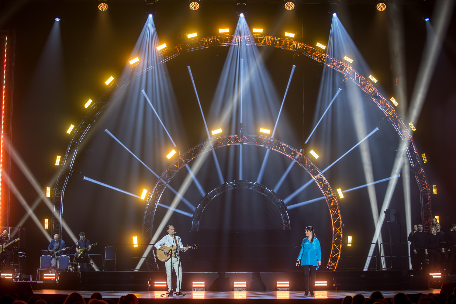 Az aláfestő zene és a fényjátékok, a táncosok gyönyörű mozdulatai által elénk varázsolt drámai előadás végén az asszisztencia az Oltáriszentséggel vonult be.