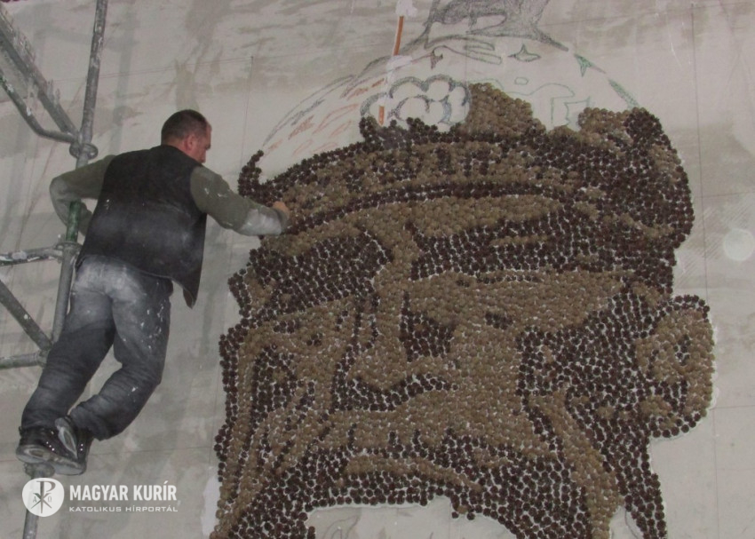 Don Dominik sokáig gondolkodott azon, hogyan tudná a gnjilani iskolaközpontra felhívni az emberek figyelmét. Végül megérlelődött benne egy terv: elkezdte gyűjteni az iskola udvarán a fenyőtobozokat, megtisztította, és vászonzsákokba válogatta őket. Több mint ötvenezer fenyőtoboz gyűlt össze. Diákok segítségével ezekből egy 90 négyzetméteres falfelületre hatalmas mozaikot készítettek, amelyen Teréz anya, Don Bosco és az albán nemzeti hős, Szkander bég portréja látható. Dominik atya számára fontos volt, hogy megmutassa a diákoknak, egy látszólag értéktelen apróságból, fenyőtobozból létre lehet hozni valami nagyot. Az új aulában összesen 51 865 fenyőtobozból hatalmas mű született, amelyet Dominik atya és a diákok az „értékek mozaikjának” neveztek el.