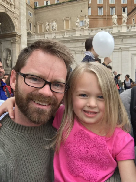 A hároméves Estellát Rómában élő keresztapja vitte el a március 22-i általános kihallgatásra. Amikor a pápa közeledett, az egyik biztonsági ember felajánlotta, hogy a kislány személyesen is üdvözölheti a szentatyát.