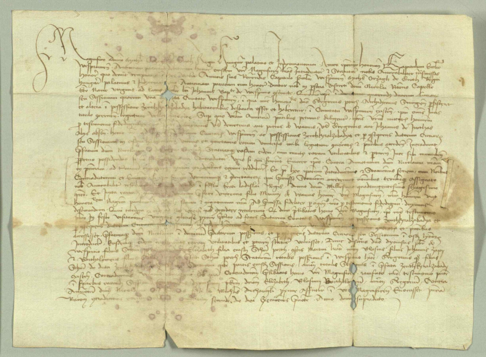 1464. július 3-án a veszprémi székeskáptalan jelentést tett Guti Ország Mihály nádornak, miszerint Miklós kápolnaigazgatónak a veszprémi Keresztelő Szent János-plébániatemplom oldalánál lévő Szűz Mária-kápolna javaiba történő beiktatása ellen többen felszólaltak (az erről szóló oklevél jelzete: Vp. oppidum 54., DF 201387.). A jelentés szerint a tiltakozást Porch Gergely somogyi főesperes, veszprémi kanonok és családja tagjai tették.