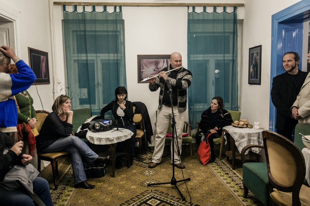 Az üres terek a kezünk nyomán helyekké formálódnak, és legtöbbször észrevétlenül alakítják mindennapjainkat. Fotóinkon keresztül egy vidéki városháza alagsorában működő súlyemelő klub, a háromezer embernek otthont adó óbudai „faluház”, egy alföldi motorvonat, egy faluszéli református drogterápiás otthon, egy kisvárosi romkocsma és egy négygenerációs kertvárosi családi ház falai közt élő közösségek életébe pillanthatunk be. A felsoroltakhoz képest még mindig új területnek számít az egyre nagyobb hangsúlyt elnyerő virtuális tér, ahová a dunai horgászokat tömörítő Facebook-csoport posztjai kalauzolnak el bennünket.