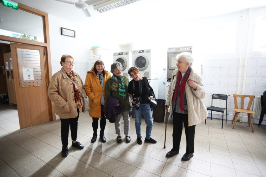 Végül Tamás József esetfelelős szociális munkás vezette körbe az intézményben a vendégeket, akik a lakószobákat, a közösségi tereket, a tüdőszűrő állomást és a mosodát is megtekintették.