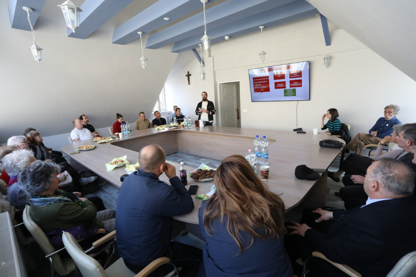 Fülep Dániel szociális munkatárs, hittanár-katekéta moderálásával rövid beszélgetésre is sor került négy, a Miklós utcai központban korábban vagy jelenleg is segített hajléktalan emberrel.