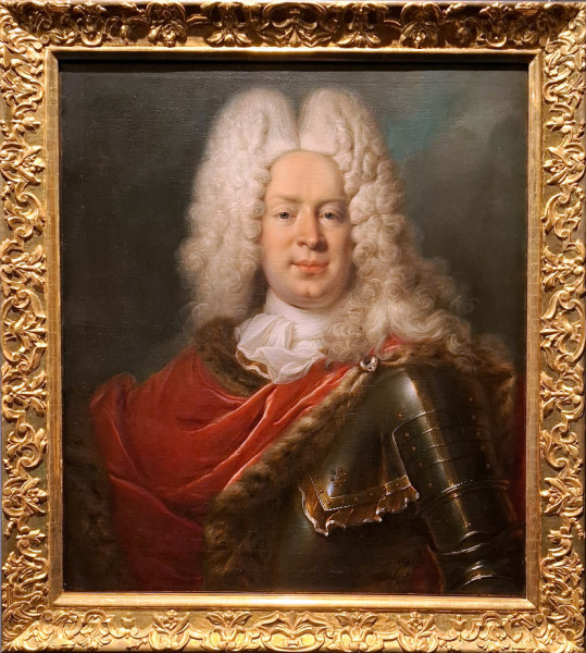 Lássunk most még egy hamisítatlan barokk portrét, szintén Mányokitól, a Georg Wilhelm von Werthern grófról készített képet! A páncélba öltözött előkelőség láthatóan jól táplált ember. Fején az elképesztő méretű rizsporos paróka ma már bizarr külsőt kölcsönöz viselőjének.